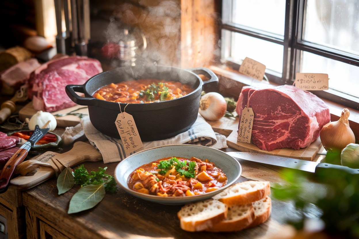 בתבשילי קדירה כמו גולש, אנחנו רוצים נתח בקר שעמיד לבישול ארוך. כזה שאם נכניס אותו לסיר וניתן לו שעות על האש, הוא לא יתייבש אלא יתרכך, יספוג טעמים וישחרר ג'לטין שמעשיר את הרוטב. בדיוק בגלל זה בחירה נכונה של נתח היא קריטית.