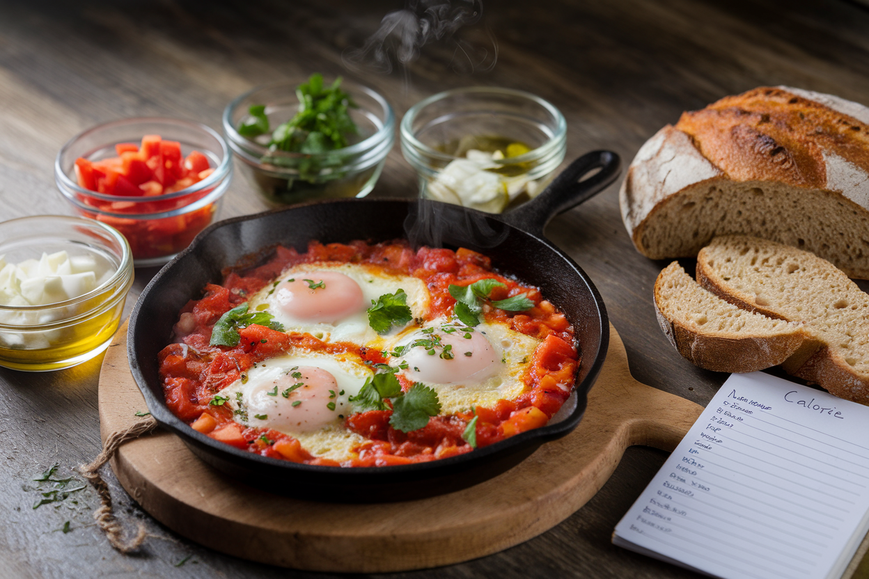 שקשוקה היא מאכל ים תיכוני פופולרי, שמכיל בעיקר ביצים ברוטב עגבניות. כל מנה של שקשוקה כוללת בממוצע כ-300-400 קלוריות, תלוי בגודל המנה, מספר הביצים והתוספות. רוב הקלוריות מגיעות מהביצים והשמן, אך גם הירקות תורמים ערך תזונתי.